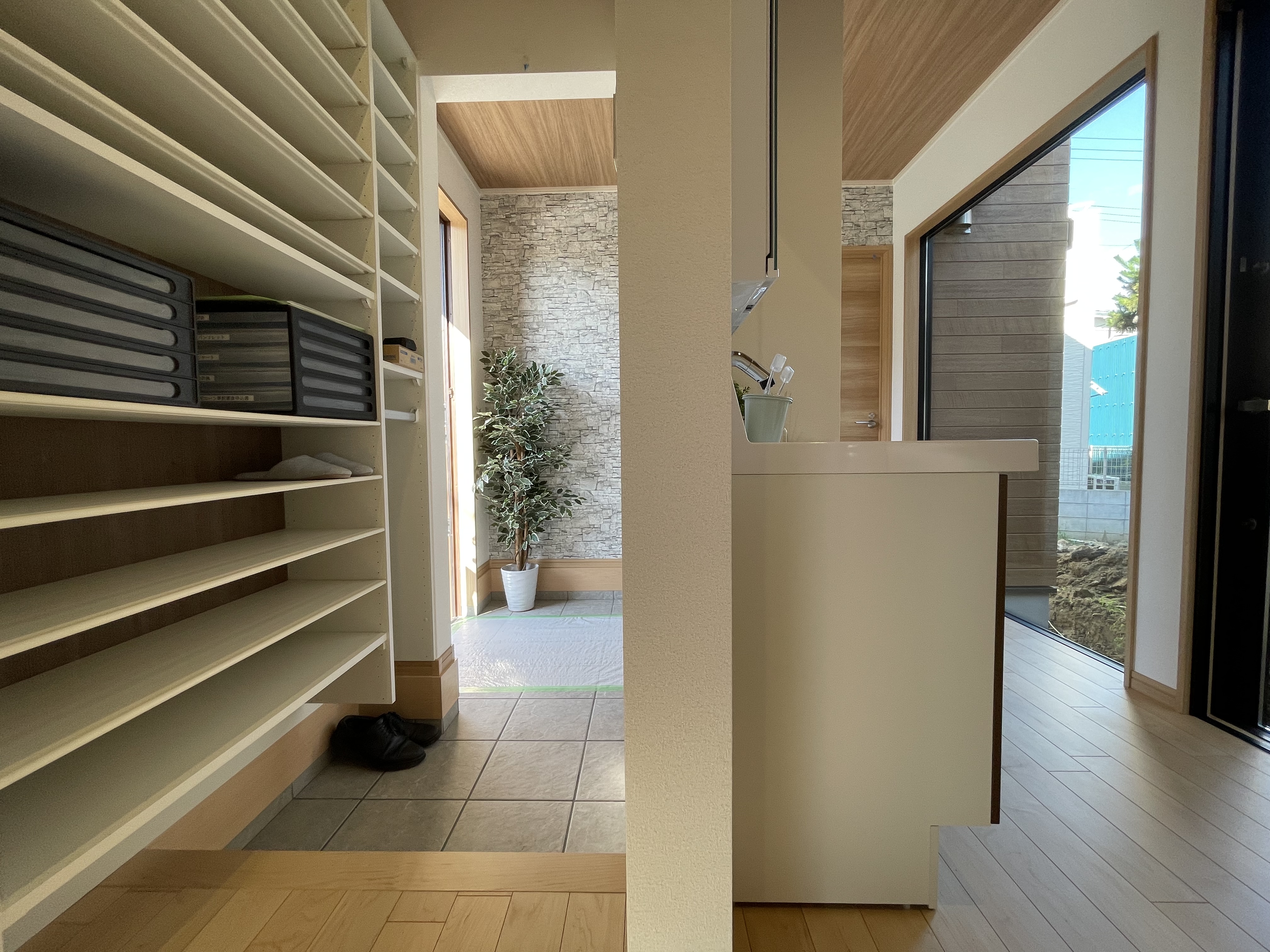 玄関に洗面台があるので帰ってきて手洗い・うがいがルーティンになります。
